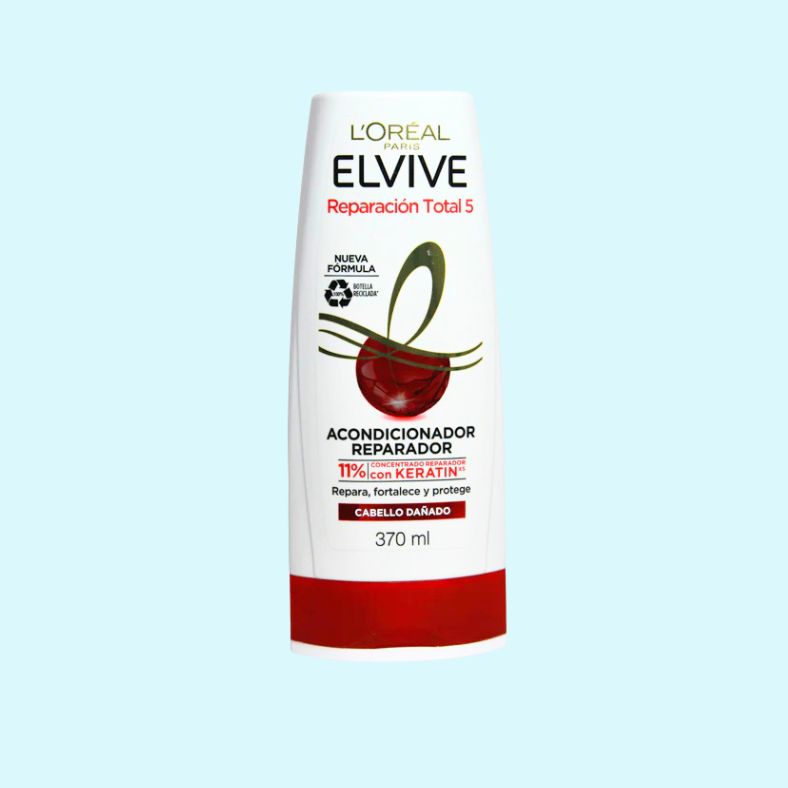 Acondicionador Elvive Total 5 de L'Oréal con Keratina Restaura y fortalece tu cabello con este acondicionador premium enriquecido con keratina. Formulado especialmente para reparar los cinco signos del daño capilar, proporciona hidratación profunda y brillo intenso en cada aplicación. La keratina penetra la fibra capilar, sellando la cutícula y dejando tu cabello más suave, manejable y resistente. Ideal para cabellos dañados, secos o maltratados. Disfruta de resultados visibles desde el primer uso: cabello revitalizado, sedoso y lleno de vida. Transforma tu rutina de cuidado capilar con la tecnología de L'Oréal.